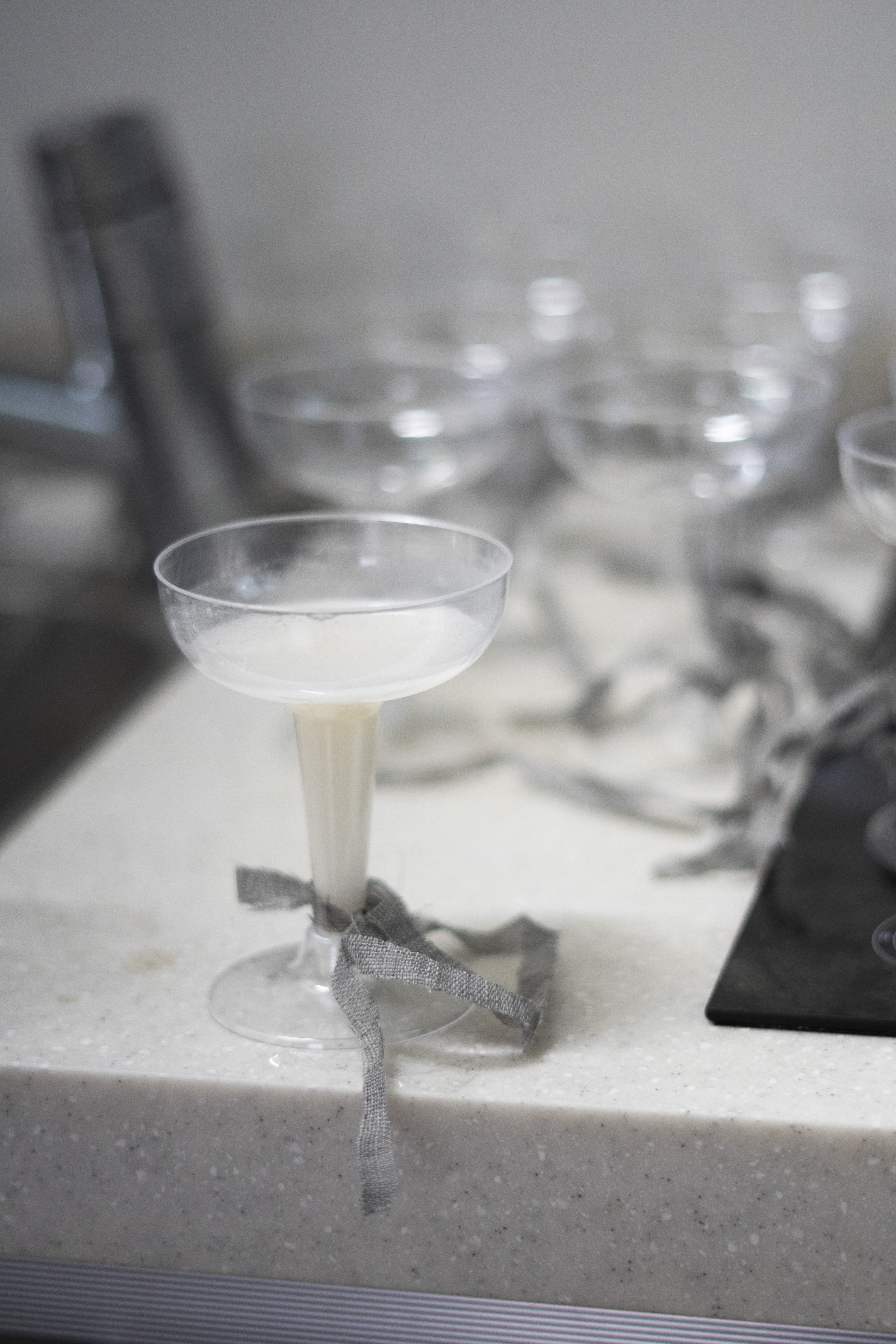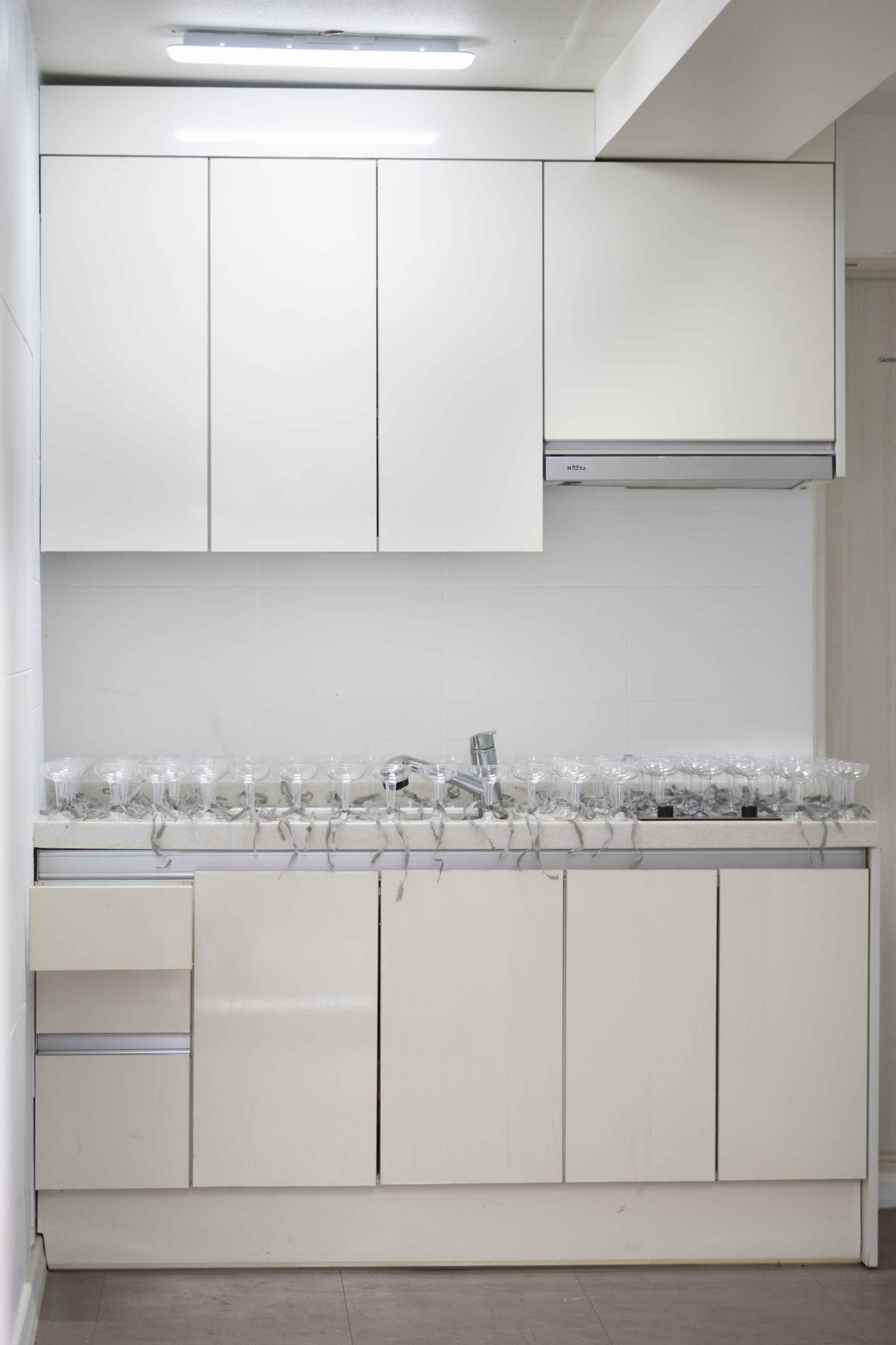 In a performative gesture, Yoon serves makgeolli in plastic champagne glasses adorned with naturally dyed hemp ribbons—materials traditionally reserved for funerary garments in Korean culture. This composition transmutes the act of departure into ritual celebration, where the hemp's association with farewell merges with the celebratory connotations of champagne vessels, while makgeolli provides a distinctly Korean element, creating an elegant synthesis of drinking traditions.