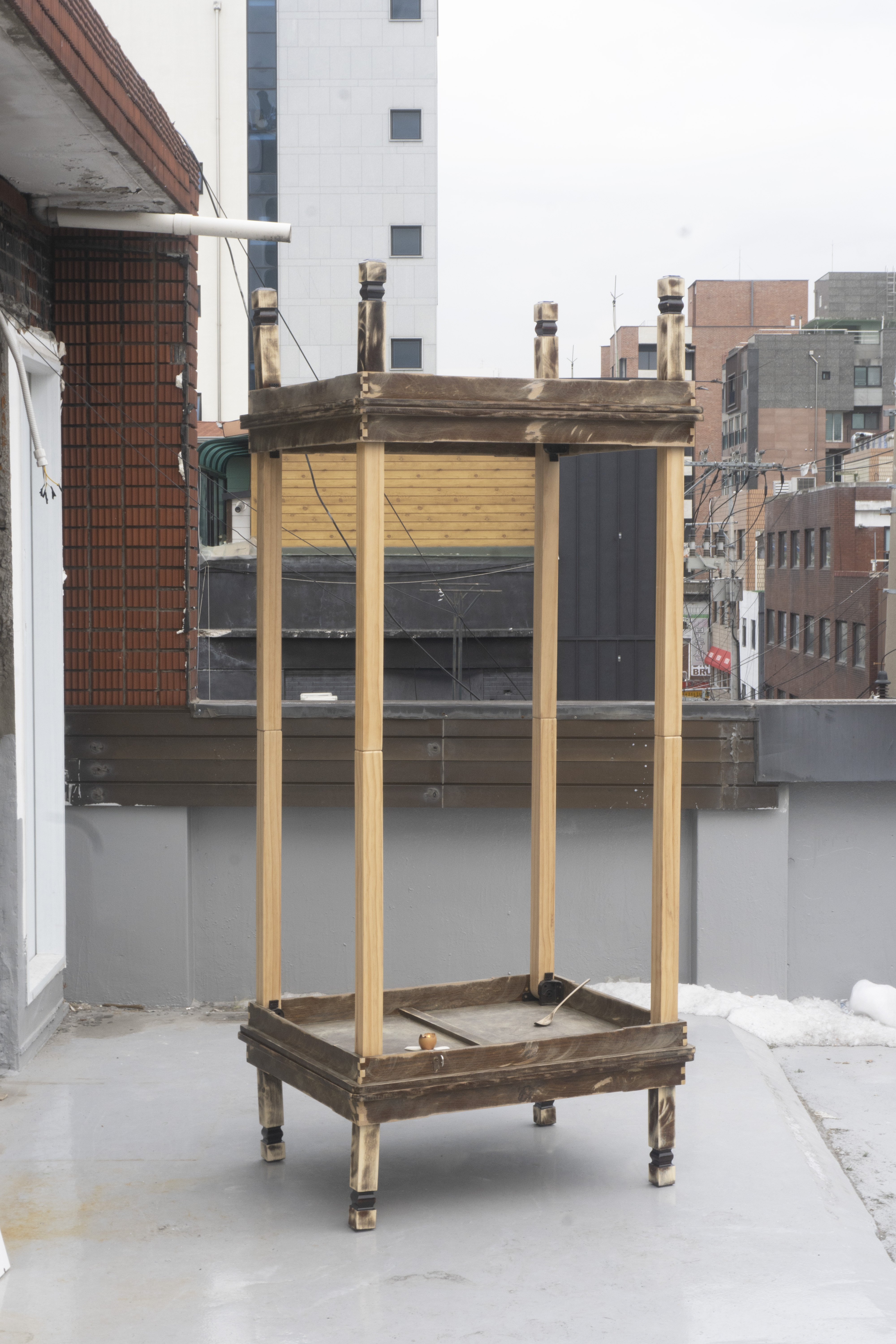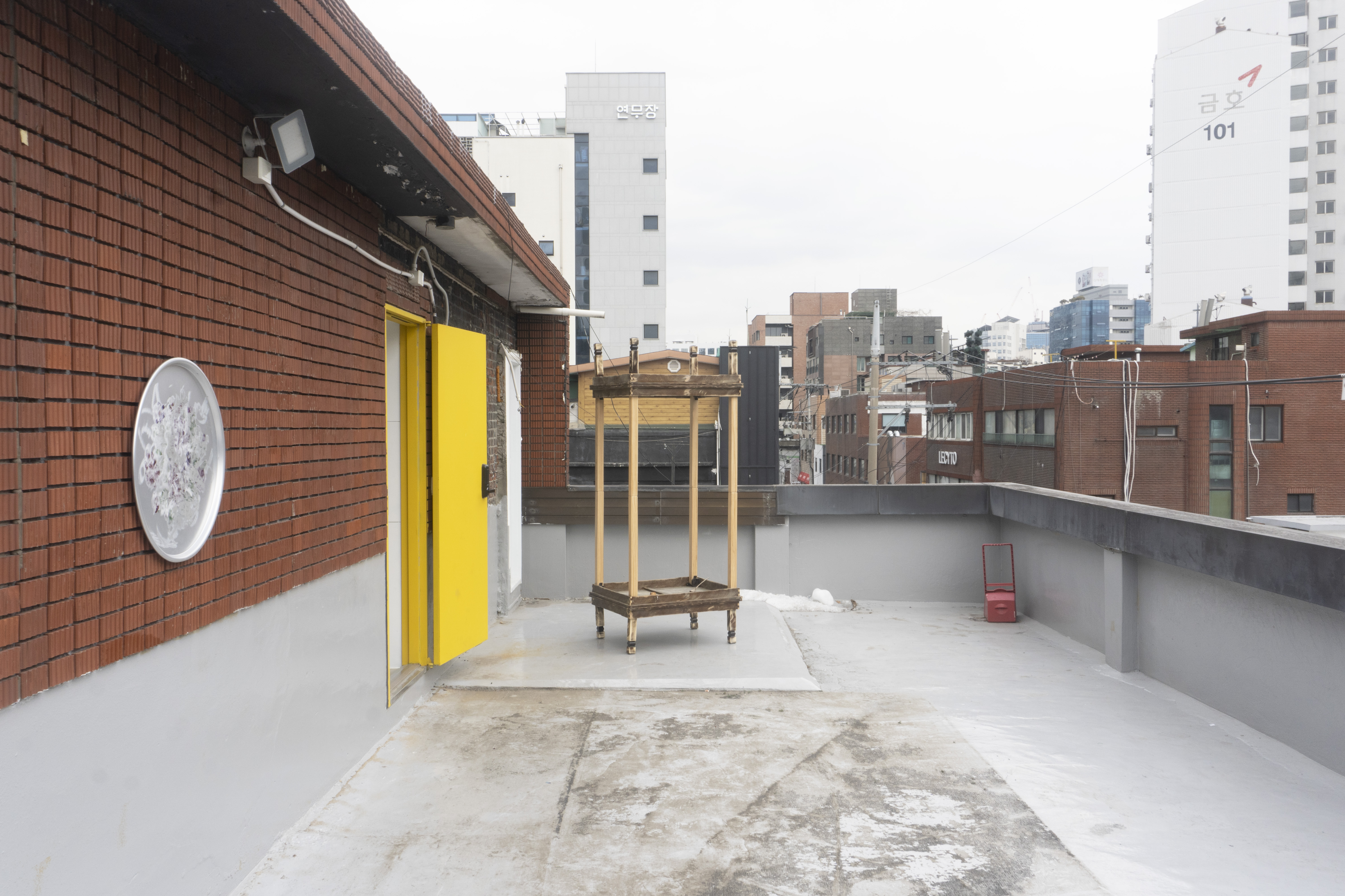 The exhibition materializes at intersecting trajectories: Yoon's relocation from Germany to Seoul converges with Koeck's preparation for departure to Vienna after his three-month residence. In this moment of spatial and temporal crossing, their works transform the rooftop into a contemporary madang—where personal narratives interweave with cultural memory, and where arrival and departure coexist in dynamic tension. Their temporary constellation of objects, performances, and narratives embraces the essential quality of madang—a space that exists not merely as a physical location, but as a fluid intersection of presence and memory.