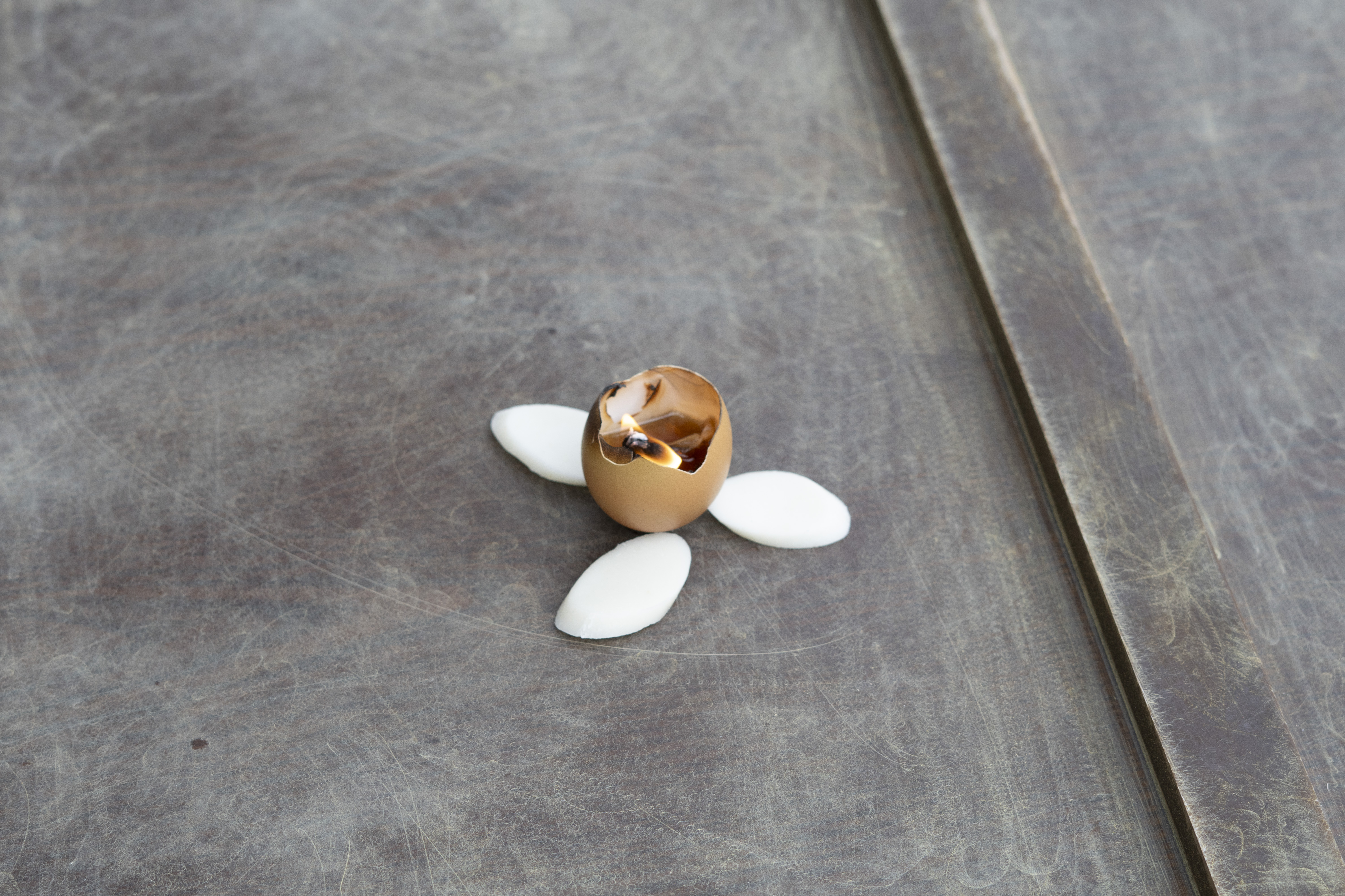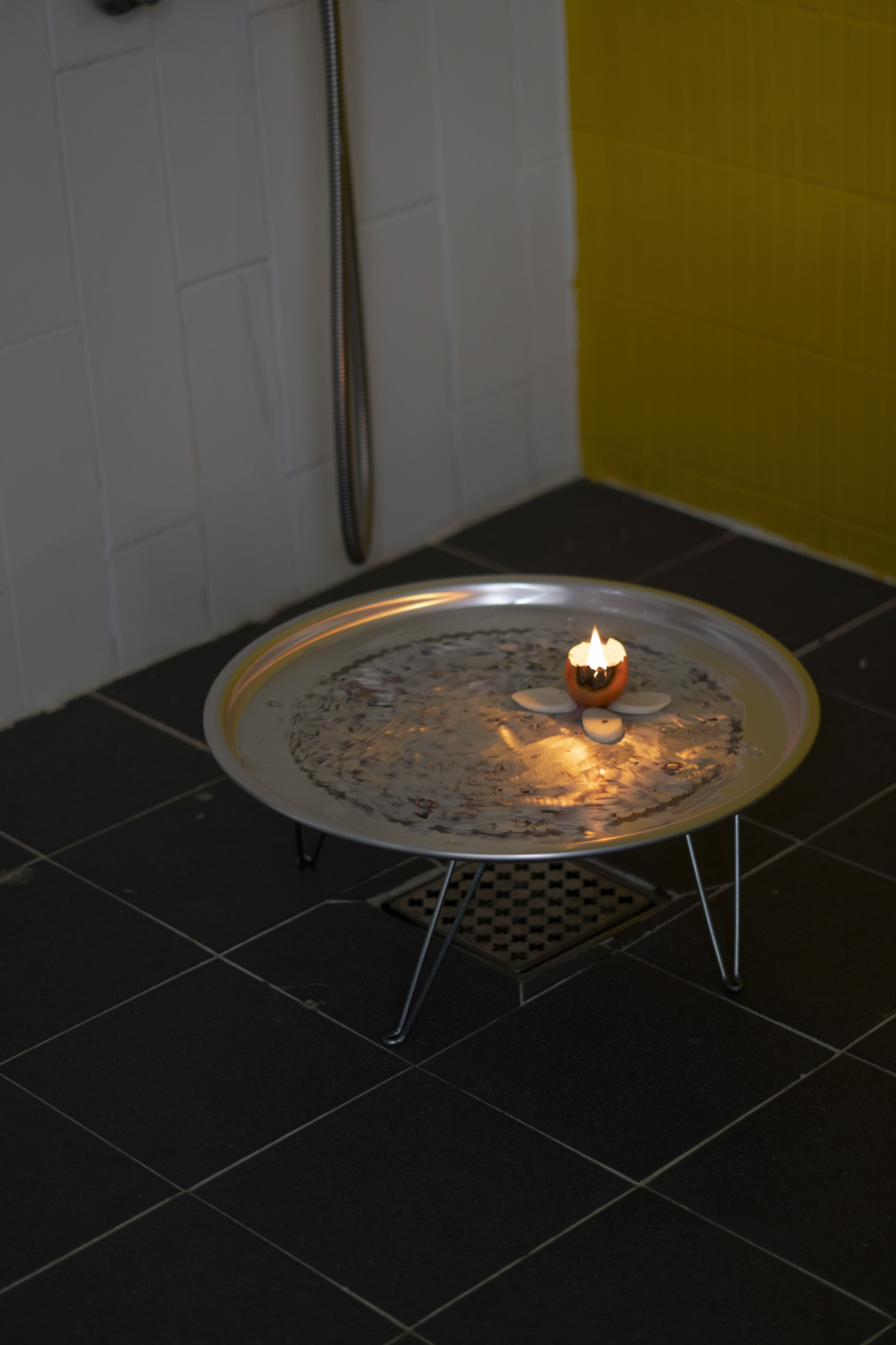 Yoon's installation engages with material culture through multiple dimensions. Her incorporation of nickel silver (양은) trays references a pivotal era in Korean domestic life. This material, introduced during Korea's late 19th-century opening to the West and the subsequent colonial period, gained prominence during the industrialization of the 1950s-70s. Valued for their durability and lustrous finish, this material became emblematic of both public dining spaces and household routines, particularly in rural communities.