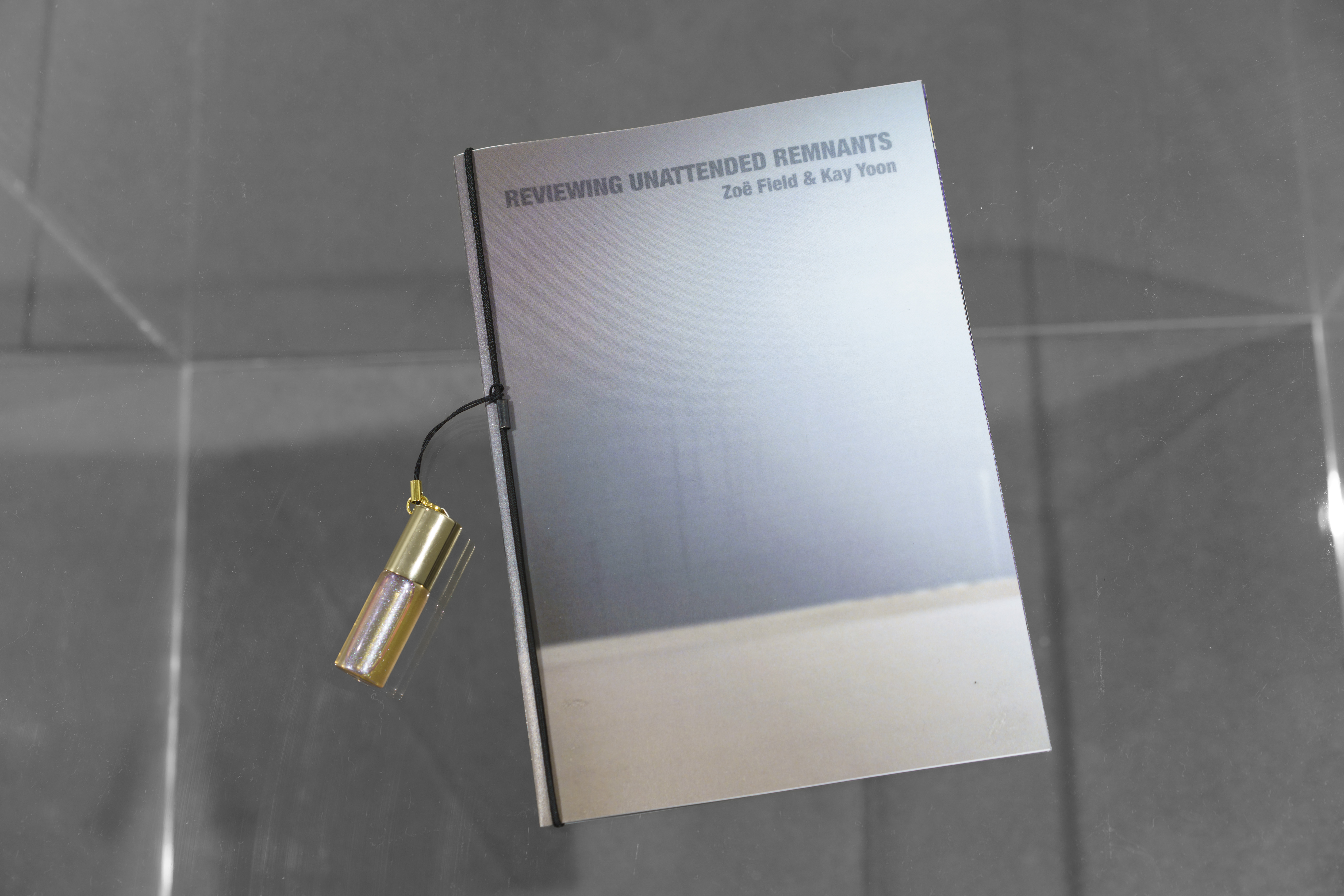 The notion of collecting and recontextualization that is central to both Yoon’s and Field’s artistic practices finds its continuation in this accompanying exhibition catalogue. Both participating artists contribute written and visual works that operate both as documentation and as autonomous artistic work. Accompanying the catalogue is a written contribution by the artist and writer Stilli, entitled SUNLIGHT THROUGH TYPE O GREEN // DEAD ROCKSTAR touching on her exploration of collecting through the lens of hauntology, exploring the entanglements of parasitism, and recursive subjectivity across sonic, textual, and spatial forms.