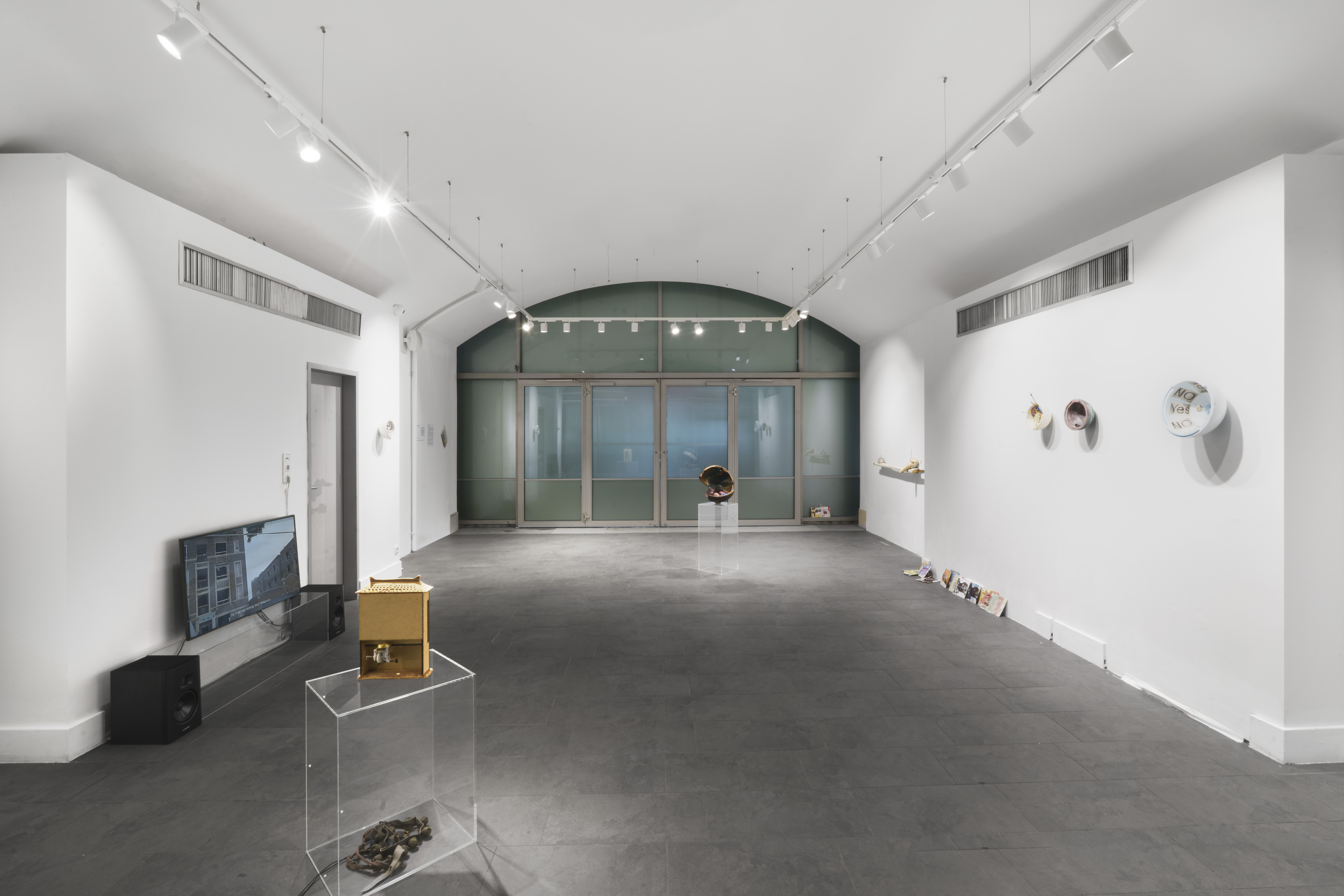 Through subjective acts of collection and recontextualization that privilege personal significance over functional or commercial value objects can be charged with new meanings and shaped by subjective narratives. At the center of Gassenprojects’ second exhibition are two artists, Kay Yoon and Zoë Field. The selected works of both artists deal with the direct affects that arise in the context of objects left behind, ranging from family heirlooms and cultural heritage to objects abandoned in public spaces or exist as remnants of past relationships. The exhibition takes place in the retail space of a former beauty store located in the transition area near the main entrance of S+U Alexanderplatz. Two glass fronts and plywood walls built into an arch of the train station’s historic layout the retail space evokes notions of a chamber encapsulated in the clockwork of motion in the surrounding transition area.